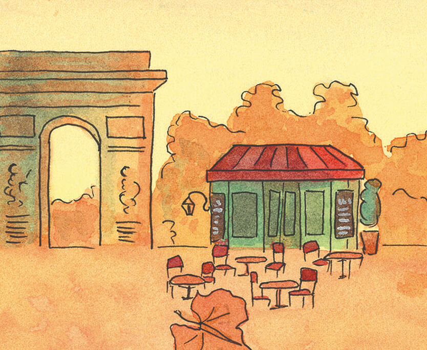 These two illustrations were created for the illustrated endpapers of a picture book set in Paris, a story about fear, courage, and transformation. In this collection, each book takes place in a different city, and the endpapers frame the journey: the first shows where the character lands, and the final one offers a farewell before she takes off again toward her next adventure.